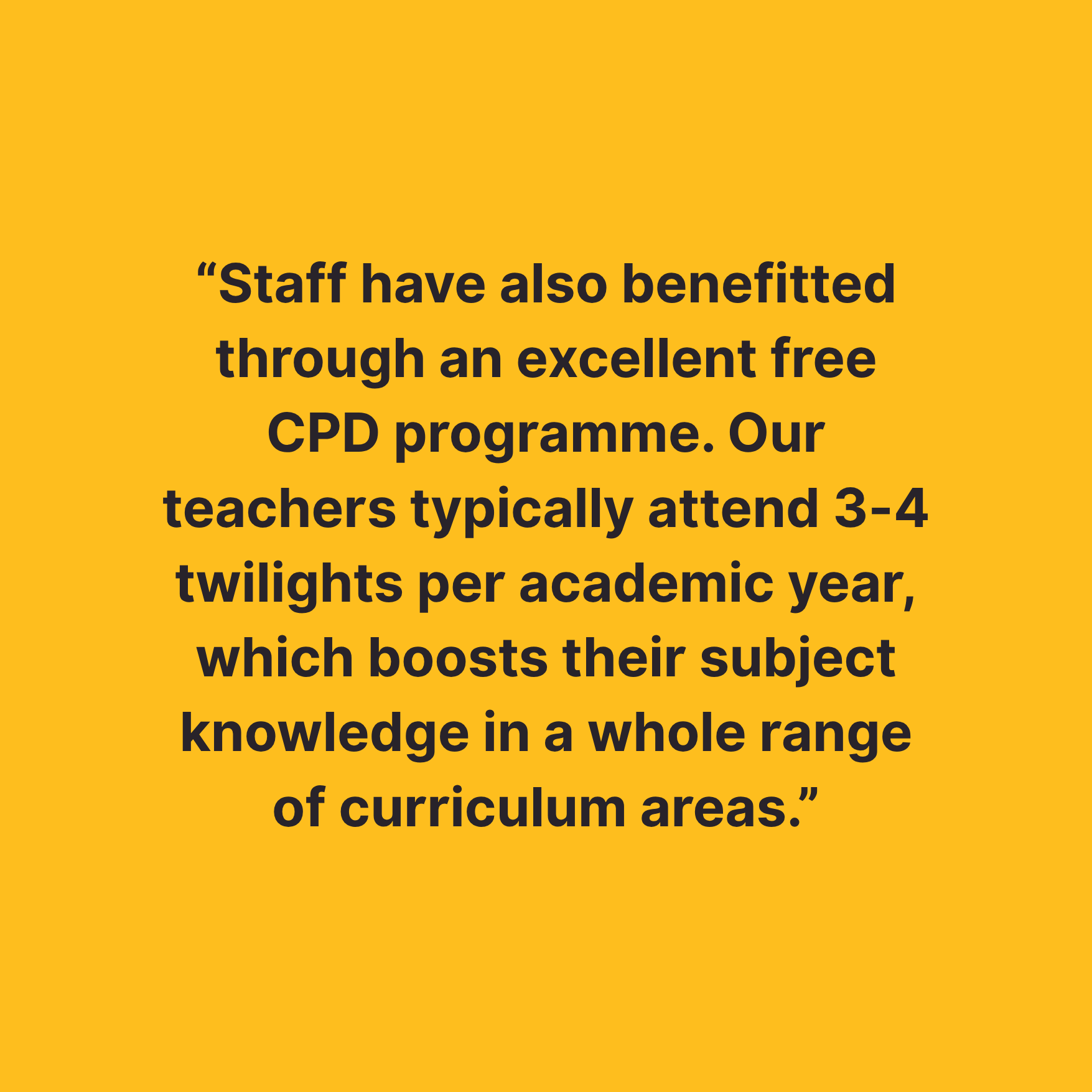 • Computer Science CPD – staff are invited to attend our Computer Science CPD to learn how to teach a wide range of levels of coding and robotics