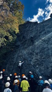 The second day took students out into the wild beauty of the Brecon Beacons, where they tackled gorge walking and climbing at Dinas Rock and Gorge Falls. Staff were struck by the way students supported one another throughout, showing encouragement and kindness in moments of challenge. For First Year Danyal, this is also something that will stay with him. He said, “A key event that I will remember is Gorge Walking. Some students struggled, but their friends supported them by cheering and motivating them to complete the challenges.”