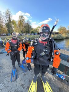 “After preparing our gear and completing the final checks, we strode into the water. After a quick adjustment to the temperature, we descended below the surface to familiarise ourselves with the site, with eyes on the lookout for any wildlife. I have to admit, descending into water always generates a powerful sensation, a mix of both wonder and excitement at what you’re about to do. Whilst swimming around we’d eventually discover the remains of a plane wreck, the perch, pike and crayfish darting around all whilst practicing our technique which made the first dive a brilliant start. After re-surfacing, we enjoyed a long break with packed lunches and jumpers to warm up.